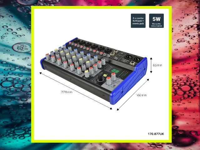 The Citronic CSD-8 is a versatile and affordable mixer that is well-suited for a variety of audio applications. Its compact size and simple layout make it easy to use, while its built-in effects processor and flexible routing options provide a wide range of sonic possibilities.