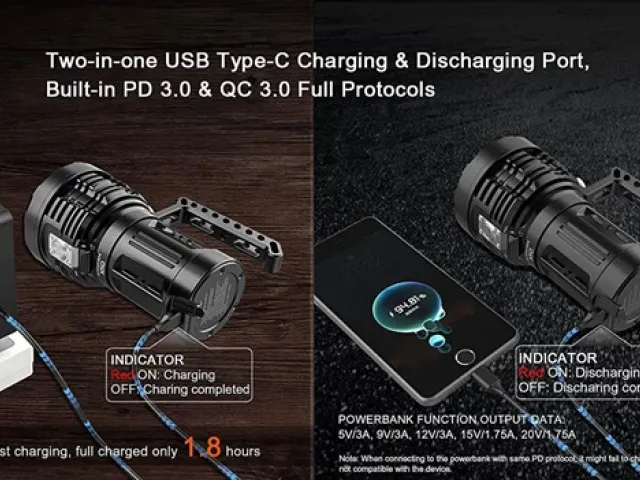 The X50 2.0 world's first PD power bank brightest flashlight powered by 3 x 21700 battery pack