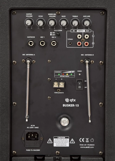 Designed with portability in mind, the QTX Busker 15 is built to withstand the rigors of outdoor use. Its rugged, durable construction ensures it can handle the bumps and knocks often encountered while on the move.