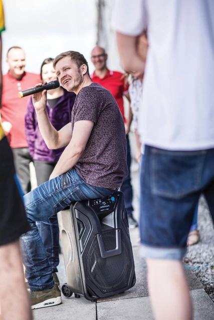 The Busker 15 Portable PA Bluetooth Speaker also includes a telescopic handle and sturdy wheels, making it effortless to transport from one location to another.